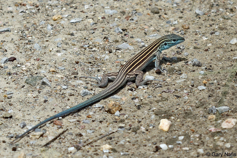 Genus: Aspidoscelis, Greek – aspido = shield + scelis (skelos) = leg – pos. ref. large shield-like scales on legs