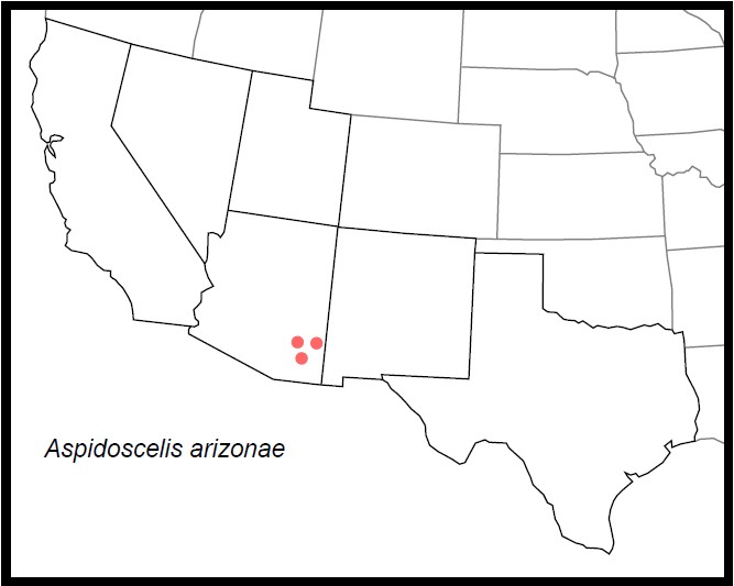 DISTRIBUTION: In our region, Aspidoscelis arizonae occurs in only in Arizona in three isolated populations, two located in southern Graham County and one in Cochise County.