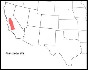 DISTRIBUTION: In our region, Gambelia sila occurs only in California in the San Juaquin Valley and neighboring valleys and foothills.