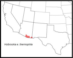 DISTRIBUTION: In our region, Holbrookia e. thermophila occurs in extreme southeastern Arizona and southwestern New Mexico.