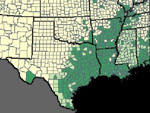 DISTRIBUTION: In our region, Hyla cinerea occurs only in the eastern half of Texas with an additional isolated population recorded from Brewster County in west Texas.