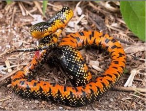 Genus: LampropeltisGreek – lampros shining, beautiful + pelta = small shield – ref. smooth shiny dorsal scales typical of the genus