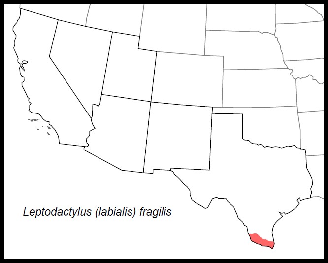 LEGAL STATUS: Leptodaqctylus (labialis) fragilis has been listed as a Threatened Species by the State of Texas since 1988.