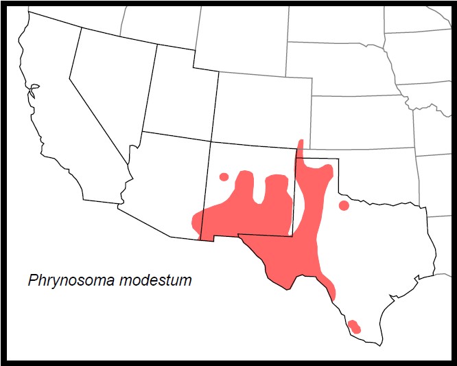 DISTRIBUTION: In our region, Phrynosoma modestum  occurs throughout much of west Texas, New Mexico and extreme southeastern Arizona.