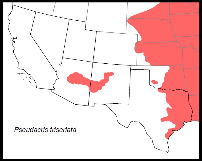 DISTRIBUTION: In our region, Pseudacris triseriata occurs in eastern Texas and central Arizona and New Mexico.